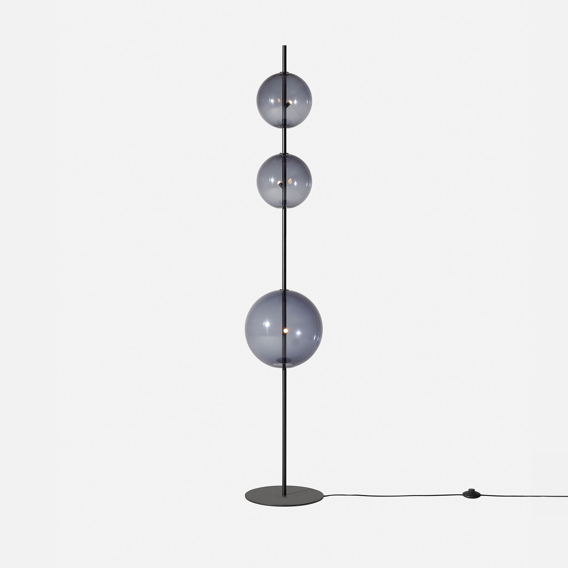 The unique lamp makes a statement with its spherical hand-blown glass shade and pared-back aesthetic. The lamp emits ambient light from the shade. The lamp consists of a kitset of parts, offering dozens of customisable configurations. This modular version features an in-line switch and is not dimmable. You can use a maximum of four shades in any configuration.