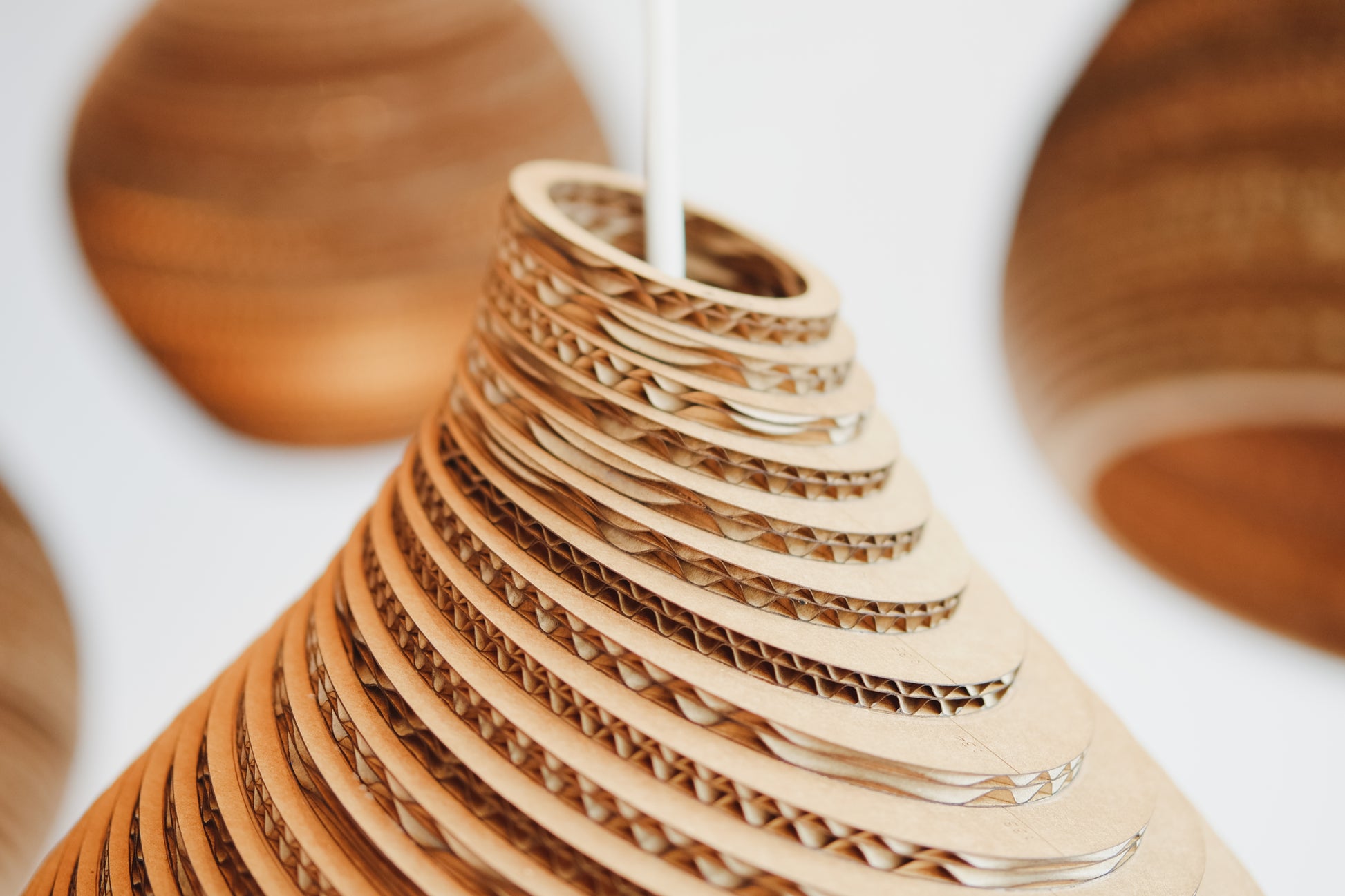 Handcrafted from recycled or pure white cardboard, Graypants’ flagship Scraplights provide warm, intimate, and functional lighting for any occasion or space. Depending on the finish, each piece of a Scraplights fixture is precision-cut with a laser or knife – Natural and Blonde welcome the subtle patina of the edge burn from the laser, while the White finish requires the use of a knife to achieve the pristine, white edges. Tough and elegant, each fixture is assembled by hand using non-toxic adhesive, and all Scraplights are treated with a non-toxic fire retardant.